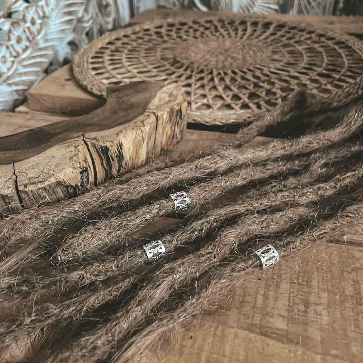 Add a touch of boho charm with these 6 silver ring dreadlock beads in silver. Perfect for dreadlocks or craft projects, their large holes make them easy to slide on and style.